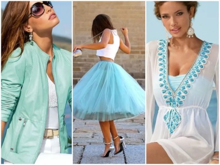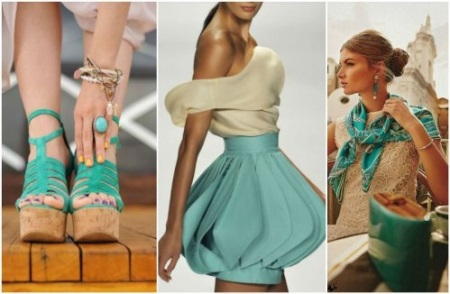 The turquoise color in clothes does not go out of fashion, regularly appearing in different shades on the catwalk. Especially often it can be seen in spring and summer collections. In winter and autumn sets of clothes, it is more often used as a non-primary color for blouses, shoes and various accessories.