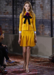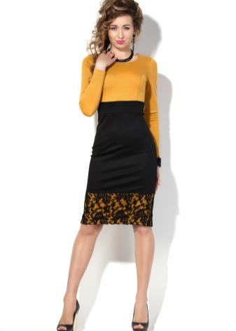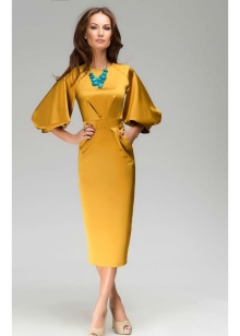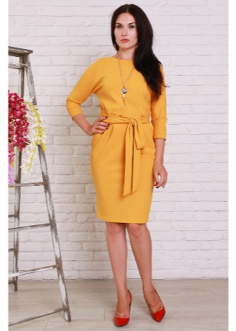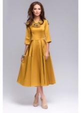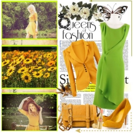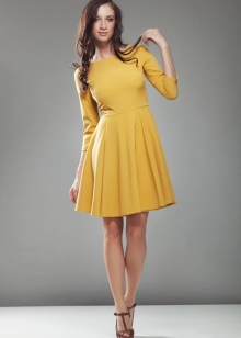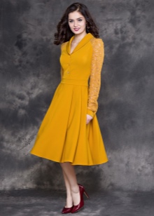 - A sheath dress in mustard color will be an excellent option for an office outfit, this same wardrobe item in a safari style is suitable for walking and meeting friends in an informal setting, and for the summer months you can choose a light sundress of this shade. Shoes or accessories from a suitable color scheme will help to complement the image.
