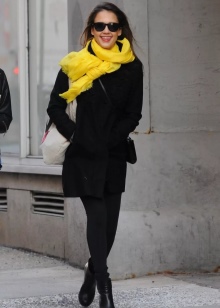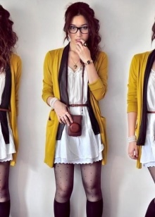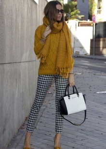 - For those who are just starting to get acquainted with this interesting shade, reminiscent of the colors of autumn, and who do not dare to choose clothes of mustard color, it is worth taking a closer look at the accessories. With the help of trifles of this color, you can make any everyday look more vibrant and colorful. For evening dresses, you can choose shoes of this shade, and with it a handbag in the same color scheme. In cloudy weather, you can set a sunny mood by tying a light mustard scarf around your neck. And the most shocking fashionistas can wear mustard tights, provided that the color scheme of the skirt or dress is chosen correctly.