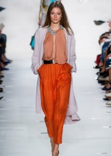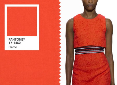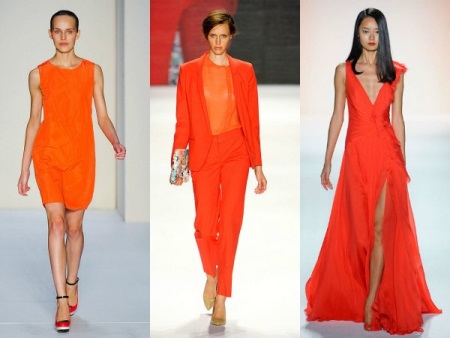 - Flame. Bright terracotta-orange color is not so easy to combine with other colors, because it is quite self-sufficient. Like flame, this color has embraced fashion shows. Designers such as Gabriela Hearst, Tory Burch and others have chosen this expressive and energetic shade and have successfully added it to their collections. Spring images in this color from casual cut clothes in casual style look juicy and catchy.