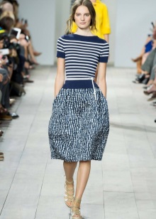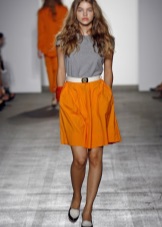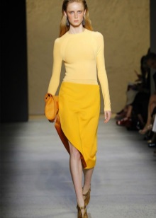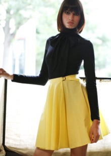 Combining a bright lemon shade of yellow, trendy in the coming season, with basic gray things is a good solution to pacify the colors of yellow. Such a skirt with a gray striped turtleneck can even be worn to work and bring everyone a sunny mood.