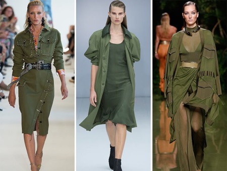 The DKNY, Balmain, Altuzarra collections presented interesting models in army colors, relevant in the spring-summer season.