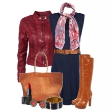 Dark blue, brown, and tawny orange are an example of a split-off circuit for blue. This combination is suitable for outfits designed for walking; for things put on in the office, these colors are also good.