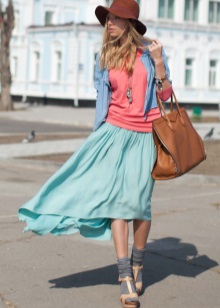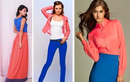 A noticeable, but less expressive image can be created if you take one of the complementary colors as saturated, and the second choose whitened or muted: for example, combine dark blue with pale orange. Opposite colors in their unsaturated shades give an interesting combination, which in clothes can be used much wider than a combination of pure (saturated) colors.