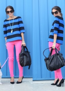 The combination of contrasting colors and shades is considered very noticeable, the most informal and youth. Based on this combination, you can create a catchy set of the simplest things in cut.