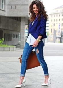 All shades of blue go well with pure white.. Such a combination, depending on the chosen clothing style and shade of blue, can be both an office classic and a walking-vacation option.