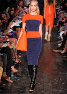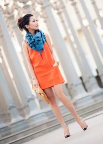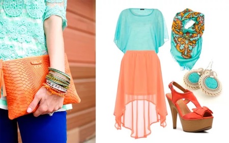 The combination of blue and orange is acceptable for office clothes, but you should be very careful when choosing shades of these colors. It should by no means be pure colors. You can use shades of blue such as aquamarine, aquamarine, pale blue, dark turquoise, etc.