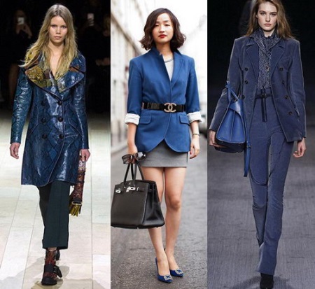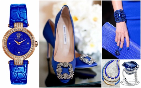 Blue color can be the basis of the color image, selected for a suit, dress, skirt, outerwear, etc., and can be used in accessories. Clothes of saturated and bright blue shades are not suitable for every color type of appearance. But there are no such restrictions for accessories, jewelry and shoes: the same ultramarine or electrician is able to refresh and decorate clothes in restrained tones, and the owner of the wardrobe does not risk getting lost in the bright blue magnificence of surrounding things.