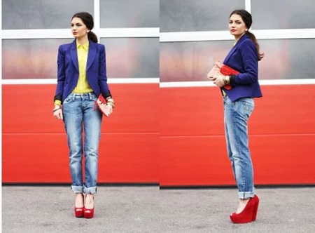 Blue, red and yellow are called primary colors. They are equally removed from each other in the color wheel (meaning the color wheel, which is an indicator of the correct combination of colors). Blue, red and yellow make up the so-called triad. It is believed that the combination of process colors is a very noticeable and impressive combination. The best way to combine process colors is to add one of them in a small amount to the process color that prevails in the outfit.