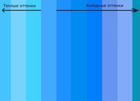 Pure blue refers to the primary, primary colors. This means that it cannot be obtained by mixing other colors. This color is considered cold. However, among the shades of blue there are also relatively warm.Warmer shades compared to "pure" blue are obtained by adding additional tones - yellow.