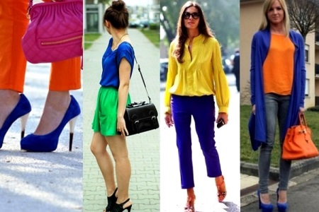 If you combine complementary colors or colors in clothes on the basis of a separate additional scheme, then try to do without bright accessories: such combinations are self-sufficient and do not require catchy additions.