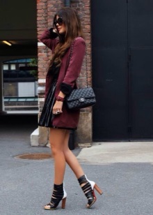 Despite the fact that the classic combination of black and burgundy is very popular in fashion lines, you should be careful with it. Such a color duo can depersonalize your image, depriving it of expressiveness. Avoiding this will help more saturated shades of burgundy, bordering on purple. Another secret of combining wine tones with black is an optional accessory of the third color. Golden or silver details will be a great option.