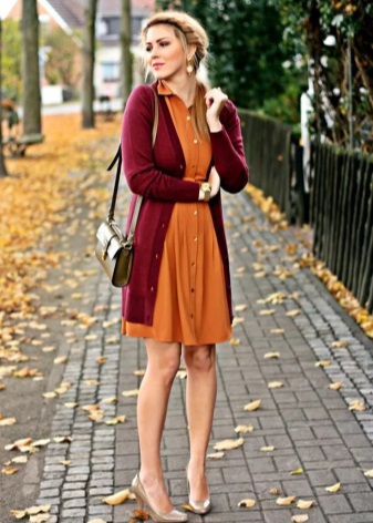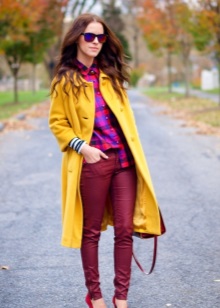 The combination of burgundy with yellow and orange shades will help you to attract the attention of others, not to remain unnoticed in any crowd. Despite the fact that this duo looks bright and contrasting, it is quite natural. This combination is typical for autumn foliage. The calmer the shade of yellow you choose, the cozier and warmer the kit will turn out. An excellent option would be an outfit in mustard and burgundy colors.