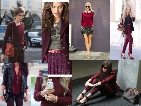 A combination of burgundy and gray is considered ideal. It is worth paying attention that light shades of gray will look most advantageous. This tandem creates a gentle, calm and very romantic image that will suit any girl. The proportion of colors in combination can vary. The abundance of gray in combination with burgundy accents will be perceived as warmer and more comfortable. If the outfit is dominated by a wine tone, the image will turn out elegant and restrained.