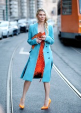 If you want a coat of this color, forget about bright blue, only if you are not a young schoolgirl. Coats in sky blue and cornflower blue look attractive on girls and women. It is not difficult to choose shoes and accessories for such outerwear, it can be a gray or beige-brown color scheme.