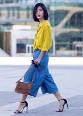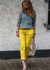 Shades of yellow and brown look spectacular in one look. Metallic shoes and accessories help to dilute the image. Look will be appropriate in everyday life and is suitable for a special occasion.