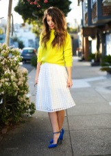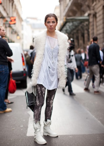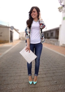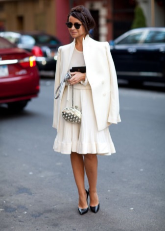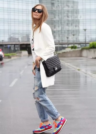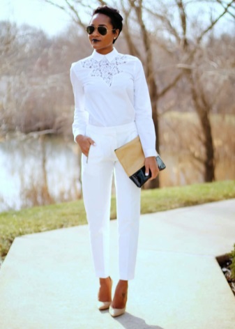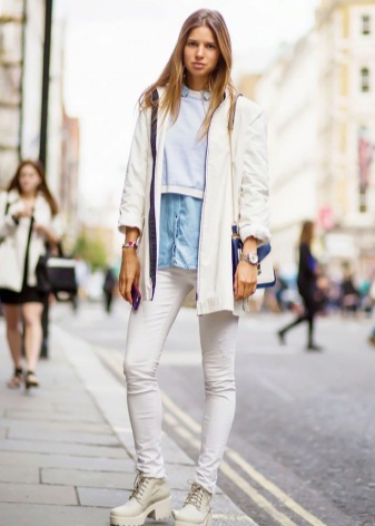 The main taboo - do not wear white shoes with trousers or jeans in black, and moreover, do not wear black tights. The bottom should be light and light, to match the shoes.