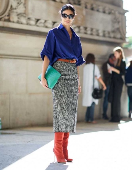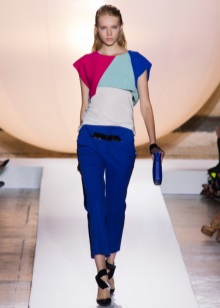 - By the size of the color spot - the image is built in a neutral color scheme, with the addition of a bright detail. Most often this is a shirt or blouse, but there can also be trousers, a skirt. Using this technique, you can divert attention from the shortcomings and focus on the advantages of the figure.