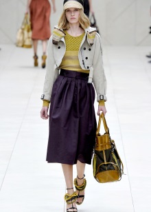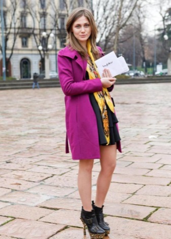 A coat or jacket of an eggplant or plum shade looks great on many girls, emphasizing their natural beauty. You can combine such outerwear with shades of yellow and green, or with related colors from the spectrum.