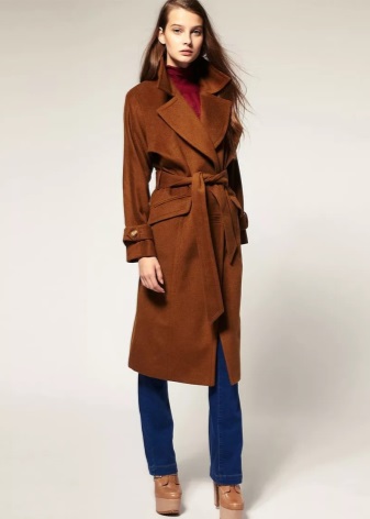 Coats of brown color are also popular, although it is quite difficult to select accessories for them. It looks best with blue, possibly with green or yellow. Not every girl decides on shoes and a handbag of such a bright color, so think a few times before deciding on brown outerwear.
