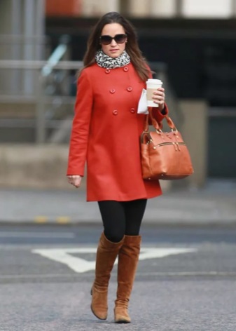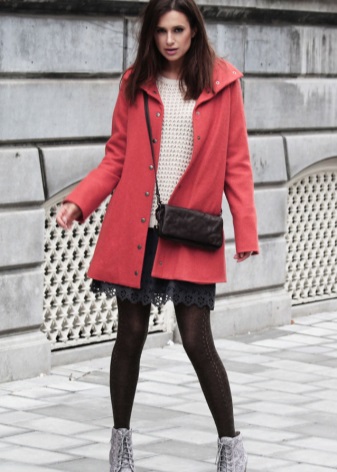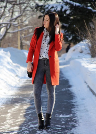 The coral color coat looks very feminine and elegant, this is a great solution for spring. To it you can pick up shoes and accessories of blue-blue, pistachio, mint. You will feel fresh and fresh.