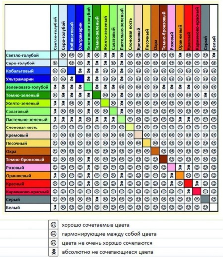 Today you can find many tables that help you figure out if your chosen colors are combined with each other. It is also convenient to focus on the color wheel, which we have repeatedly mentioned, and which is given below. You are also offered a table, focusing on which, it will be easier for you to make a choice and create harmonious images.