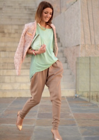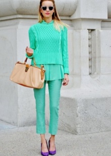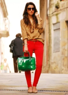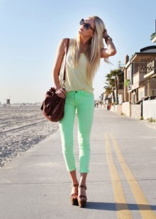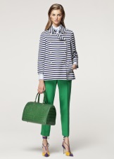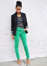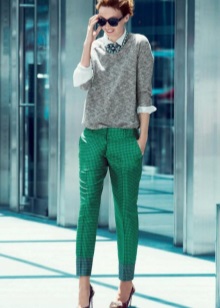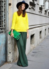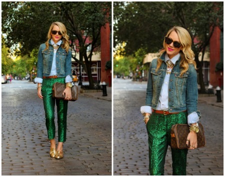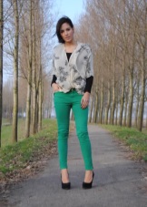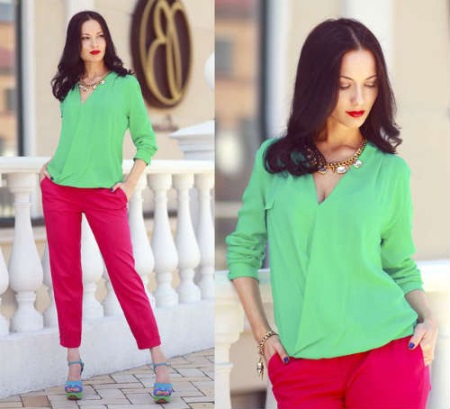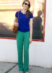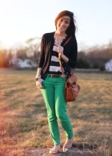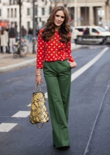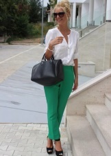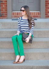 Green trousers go well with different clothing options: top, shirt, T-shirt, tunic, blouse, turtleneck, etc. The main thing here is that the colors are in harmony with each other.