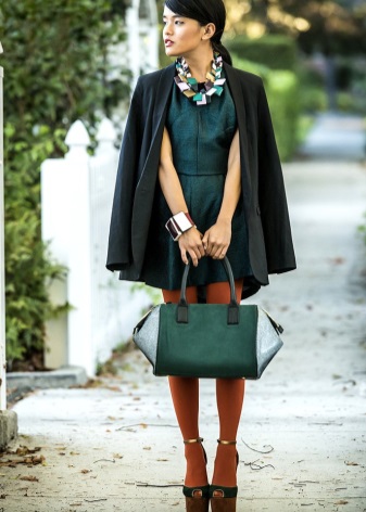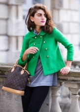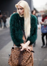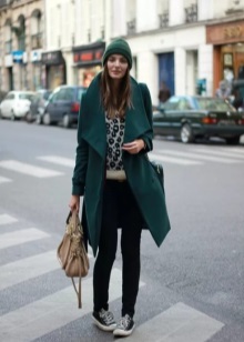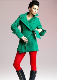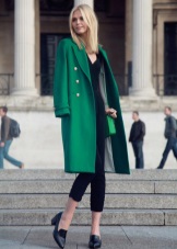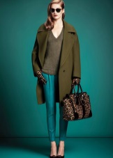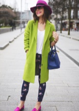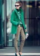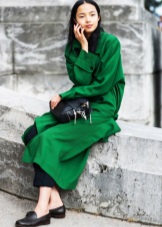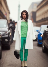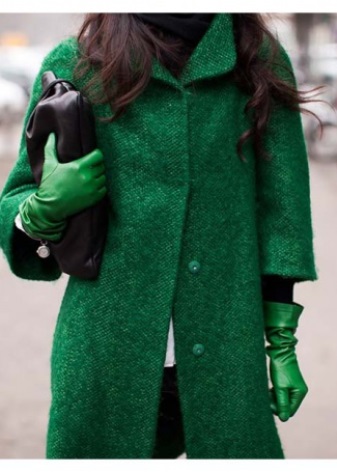 If a coat, jacket, down jacket, fur coat and other outerwear are designed in one of the shades of green (especially bright), then it is good if one more object of the same shade is present in the image. It can be shoes, bag, umbrella, hairpin in hair, etc. The rest of the clothes and jewelry should be made in a much more restrained color scheme.