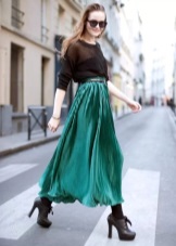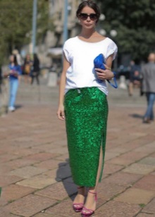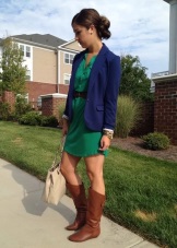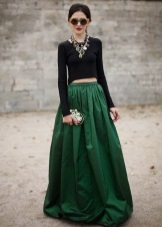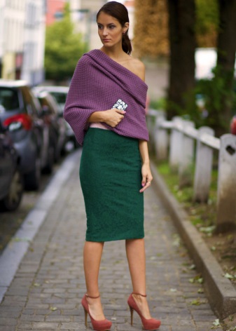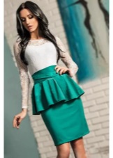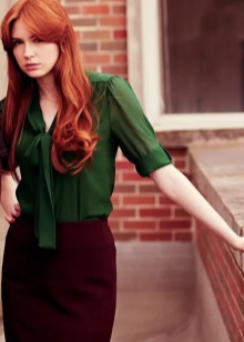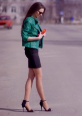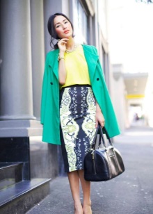 Green color looks very interesting in the office version of clothes. Replacing conservative restrained and dark tones, the suit of deep green color in combination with a snow-white skirt gives the image of a business woman mystery and irresistibility.