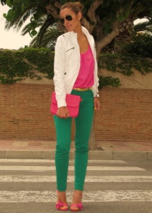 - Green and pink. An interesting combination, especially if the clothes are matched in soft, light shades of both colors.