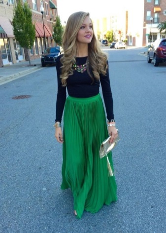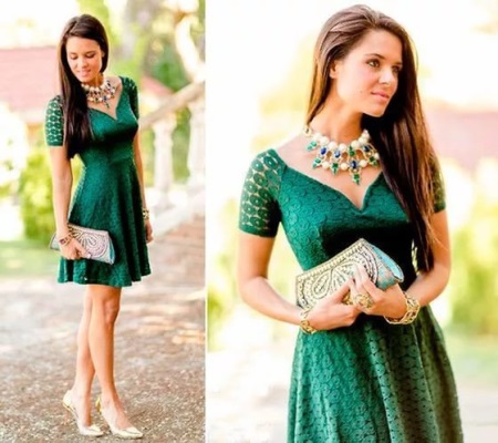 - Bright, neon green tones are appropriate in youth style. The outfit of dark green is an ideal option for a celebration.