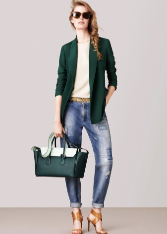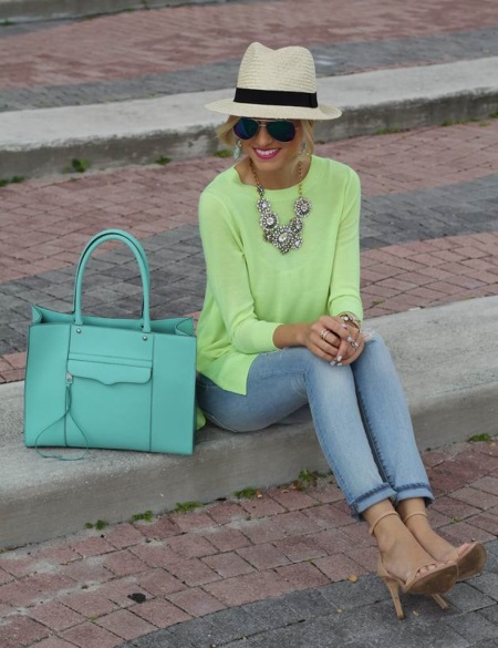 When choosing a bright, catchy green accessory, for example, an original-shaped handbag decorated with rhinestones, we must remember that such an object in itself attracts attention. Therefore, the rest of the clothes should look much more modest and restrained. It can be a business suit, a white blouse and a black skirt, a laconic dress.