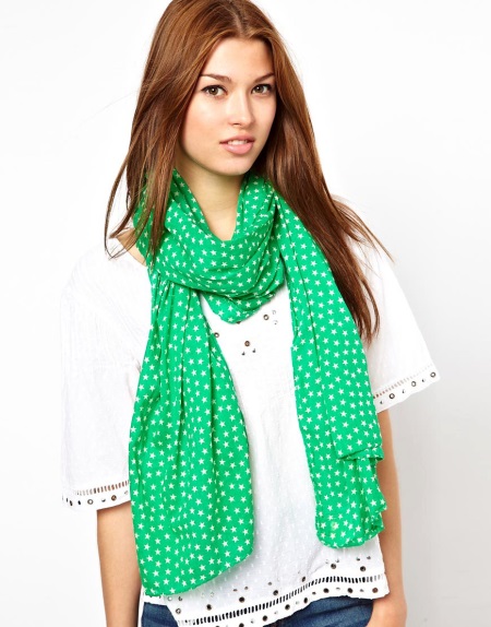 Lightweight, airy green scarf will add any look of elegance and lightness. This accessory will beautifully shade the blouse in beige, golden or steel color.