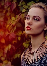 The woman "autumn" can and has every right to afford large voluminous jewelry or multilayer beads. High-quality jewelry made of materials resembling natural ones (wood, stones, shells, turtle, leather, straw) is simply necessary in the wardrobe of the autumn color type. Do not forget about fabric jewelry - woven bracelets, necklaces, earrings.