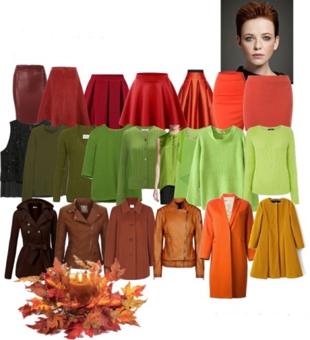 As a conclusion: brown, green and red shades are suitable for the autumn color type. Depending on the subtype, saturation, contrast and other indicators of colors can vary - pistachio and olive shades of green, golden beige and dark chocolate from brown.