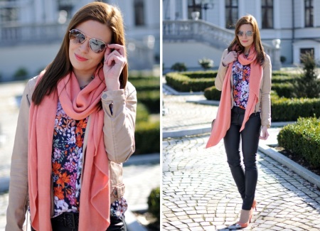 Large size scarves and stoles, hats and sunglasses are indispensable accessories for a woman in the fall. For scarves, the same rules as for other things, but a hat can be not only felt, but also straw.