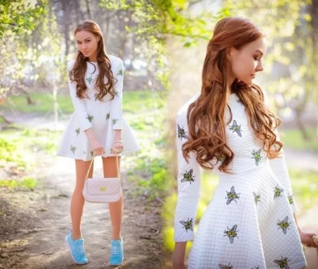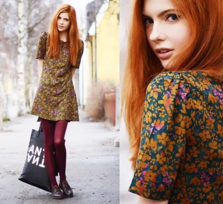 As for the print, red-haired girls will undoubtedly suit folklore motifs, animal prints (leopard, tiger). In this case, such a picture will not look vulgar.