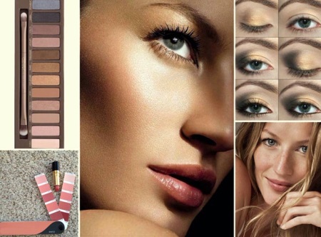 For a richer make-up, the ideal colors will be shades of emerald, purple, all shades of green, shades of peach, bronze, cognac, as well as lavender and gold.