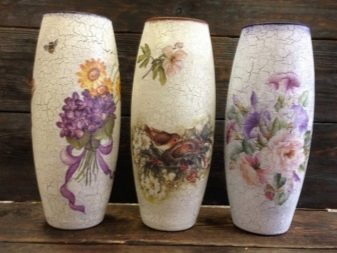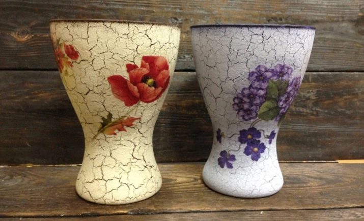 Artificial aging of the paintwork surface. The crackle technique is often used in combination with decoupage. The surface of the subject is covered with a thin network of cracks. This is achieved as follows: Craquelure varnish is applied to the paint layer, it is allowed to dry almost until done, then the object is painted again with acrylic paint diluted with water to a liquid state. Allow to dry for a day. During this time, the paint will crack and be fixed with shellac varnish.