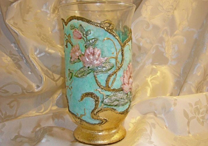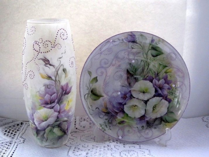 How unusual and delightful the decoupage technique looks on the glass surface can be seen by looking at the photos.