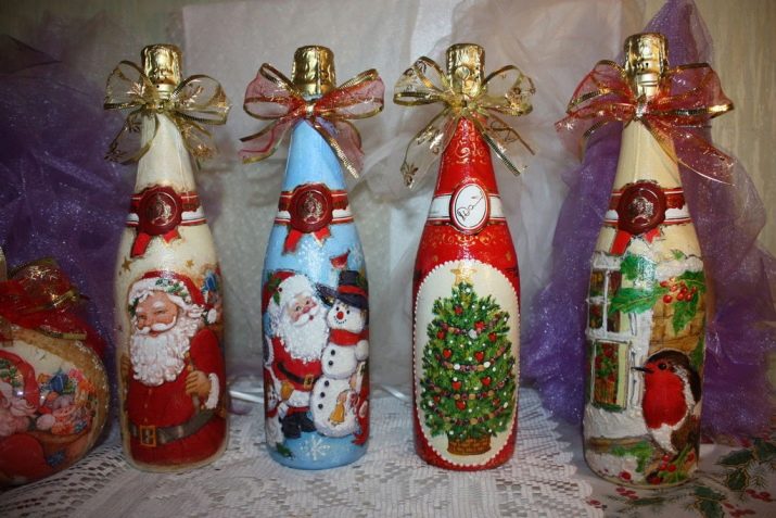 - Decoupage bottles, New Year's series.