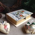 - Spectacular box decorated all over the surface, - at the same time a very beautiful and practical gift.The plot composition can be placed on the surface of the cover, and on the sides decorated with paper prints to match.