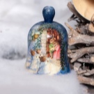 Children's subject pictures in the winter theme - A great idea for decorating the Christmas ball. You can use ready-made plot pictures and decorate the joints with braid. Brushes and ribbons are used as additional elements.