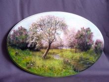 - As a rule, the main composition located in the center of the plate, the sides and the background are decorated at will with gilding, silvering, volumetric decor.