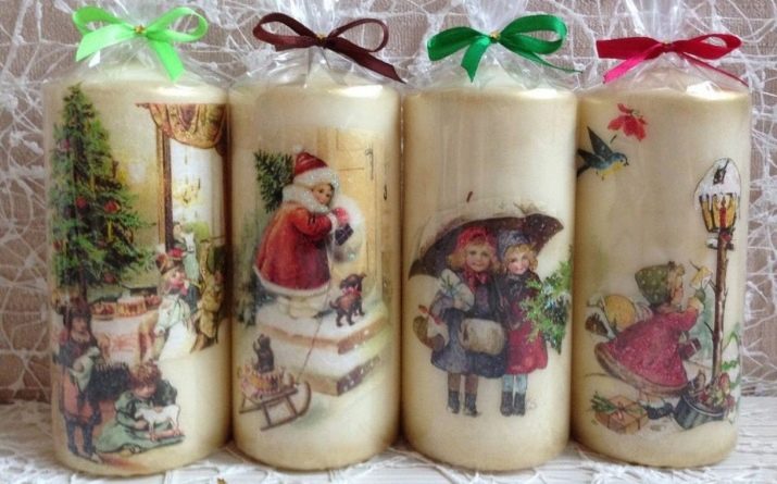 Crafts for the home using decoupage technique involve the use of a variety of materials: bells, wooden blanks, hearts made of glass and wood. You can decorate candles, cans, Christmas wreaths and flags in the New Year theme.