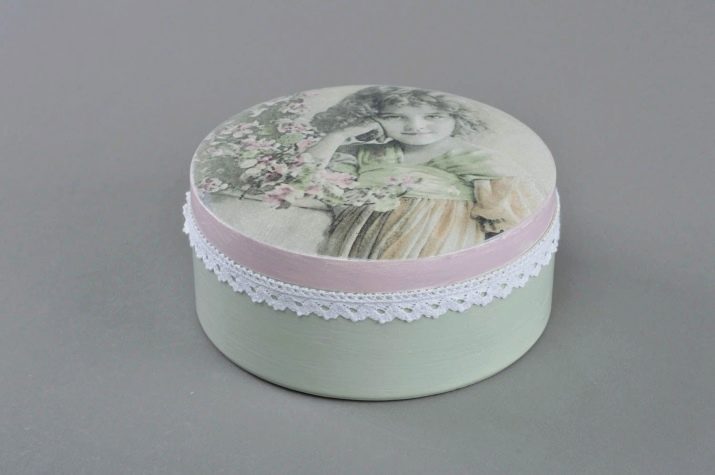 The simplest project for beginners is the usual round box, painted in a plain color, with a laconic pattern on the lid.