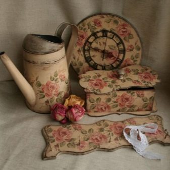 Almost all products made in this style have some fray, unevenness. It was as if the spirit of the time went through things, but did not make them old, a place which is only in a landfill, but, on the contrary, turned into a favorite retro. This artificial aging is also actively used in decoupage. Decoupage in the Provence style can be started with small things - decorating wooden combs, caskets, gradually picking up on the furniture.