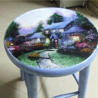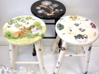 For decoupage of chairs with pure wooden seats, the same materials and technologies are used as for stools. Decoupage cards and napkins are used as a pattern.