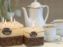 You can decorate a candle made by yourself with various decorative elements. For example, it can be a transparent package with a satin ribbon and a tiny postcard on which you can write the name of the giver and a wish to the hero of the occasion. A decoupage candle will also look beautiful if, after gluing a beautiful napkin, decorate it: