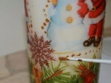 This workshop is somewhat different from the previous two. To create such a gift, it is worthwhile to prepare the candles themselves, decoupage napkins, a hairdryer and decor, the necessary accessories for cutting and painting. After the picture is cut out, it must be attached as densely as possible to the decorated candle in the chosen place with the pattern up. The hair dryer is turned on in full mode and a piece of paper is glued with it.